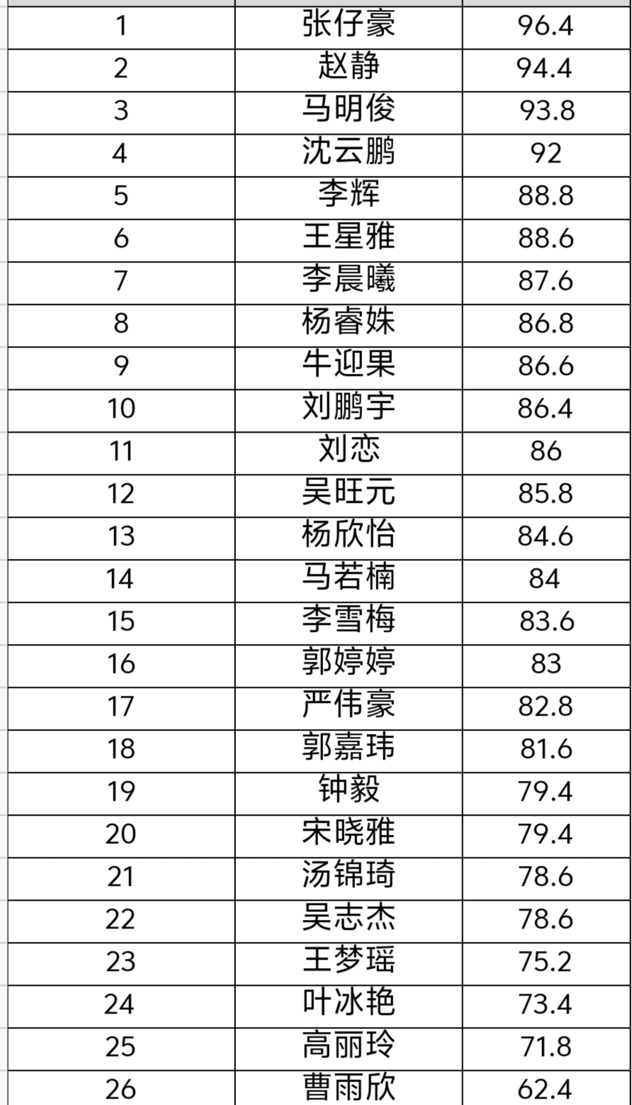 成绩公示表如下图: