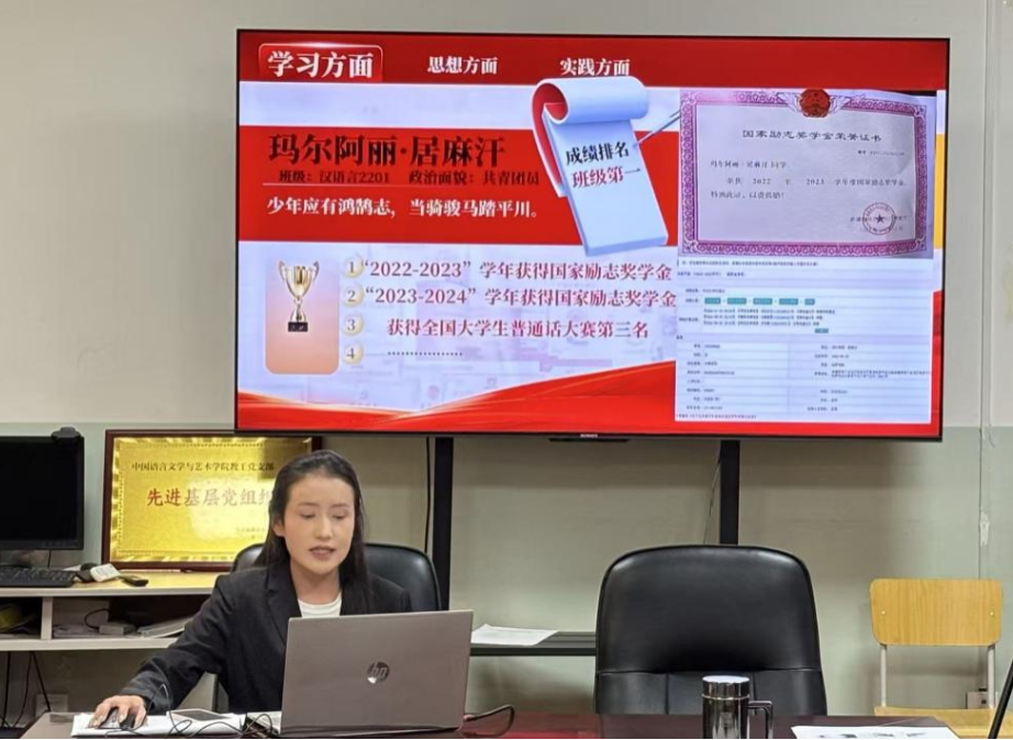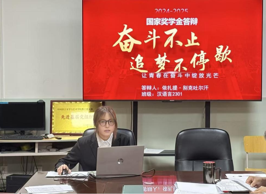 答辩环节中,维语言专业、汉语言专业初审前两名的学生代表依次展示。他们从思想态度、学业表现、实践行动等维度展开,以进取的思想信念展现价值追求,以刻苦的学习态度诠释求知精神,以丰富的志愿服务与实践经历彰显责任担当,更有学生凭借优异成绩、明确的成长规划与高标准的自我要求,充分诠释了新时代青年学子的综合素养,也展现出中国语言文学与艺术学院学生积极向上、笃行实干的精神风貌。