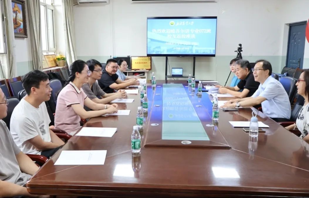 7月26日,我院迎来了一批特殊的“客人”——维吾尔语专业毕业多年的校友们怀着对母校的深切眷恋回到校园,与学院领导教师开展座谈交流,并先后参观了校史馆与图书馆,共同重温青葱岁月,共话学院发展新蓝图。