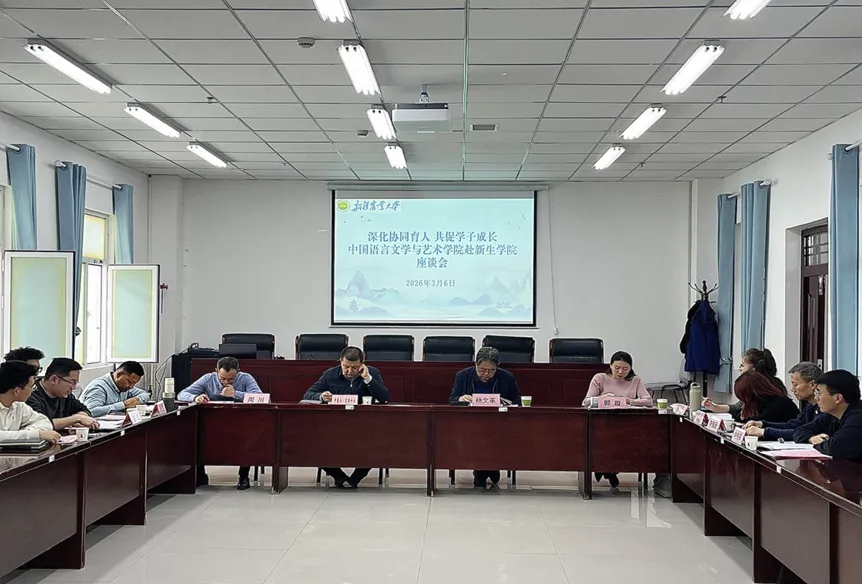 为深化两学院育人协同,精准掌握2025级学生学习生活与思想动态,畅通沟通渠道、强化工作衔接,2026年3月6日,中国语言文学与艺术学院赴新生学院亚新校区开展春季学期师生座谈会。会议分教师专场、师生共议两个阶段进行,由中语学院党委副书记郭璇主持。