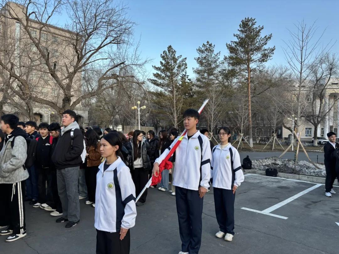 清晨,全院师生整齐列队。在主持人汉语言2401班黄瑶瑶的宣告下,仪式正式开始。国旗班步伐铿锵,护送国旗入场。伴随着雄壮的《义勇军进行曲》,五星红旗冉冉升起。全体师生肃立注目、齐唱国歌,在凛冽的晨风与神圣的氛围中,接受了一次深刻的爱国主义精神洗礼。