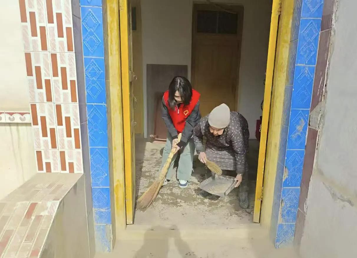 在阿瓦提县驻村工作的同学,早已在晨光中忙碌起来。他们为参与乡村环境整治的村民准备热腾腾的午饭,也走进老乡家中,帮忙打扫院落、整理居室。泥土沾满鞋边,笑容挂在脸上——在贴近大地的地方,他们正用最朴实的方式,传递温暖,读懂乡情。