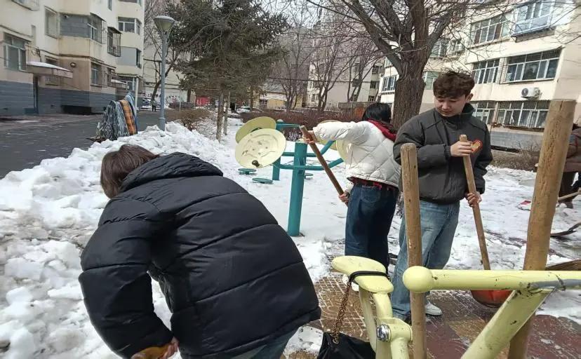 与此同时,在新疆电视台实习的另一组同学,正挥锹铲雪、协助社区清障。寒风中的劳作,换来畅通的道路与暖心的感谢——志愿精神,就在这样的举手投足之间。
