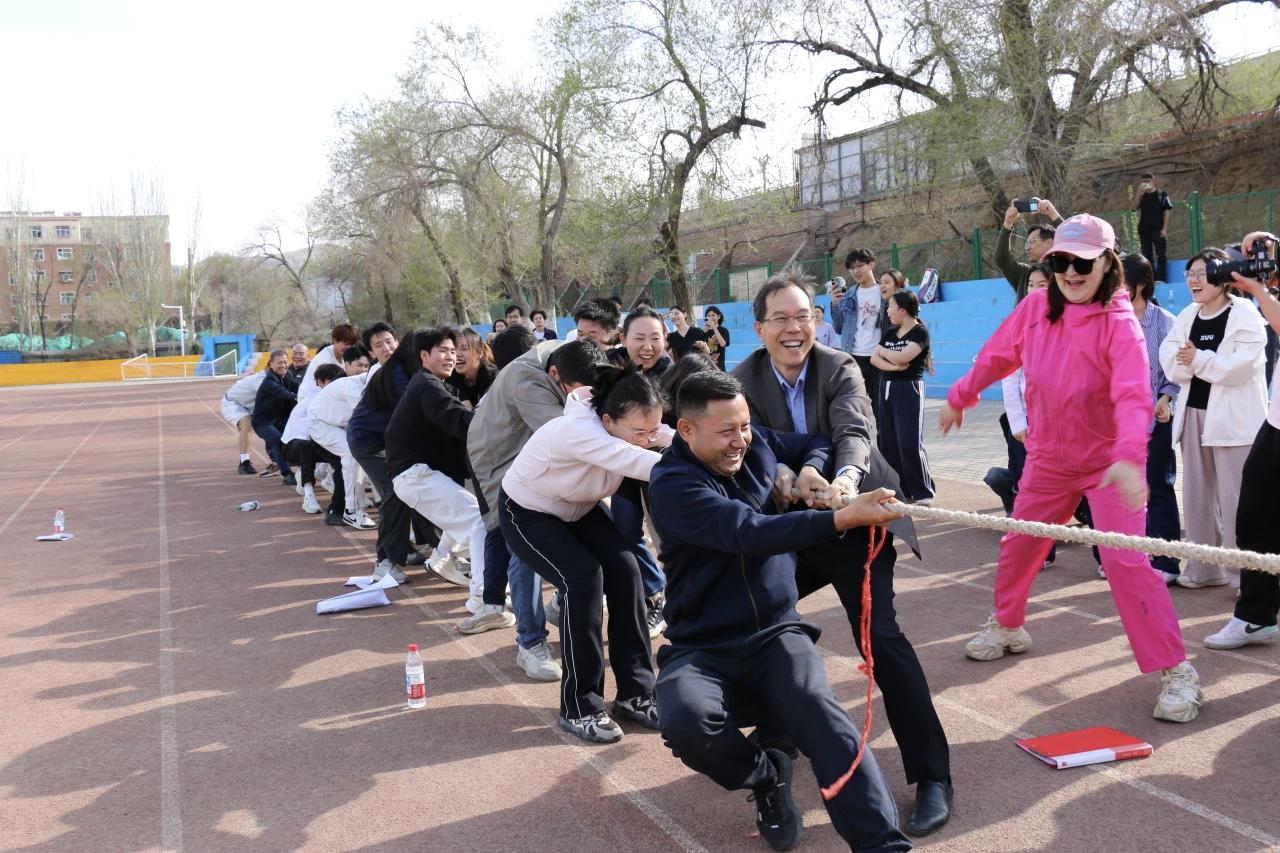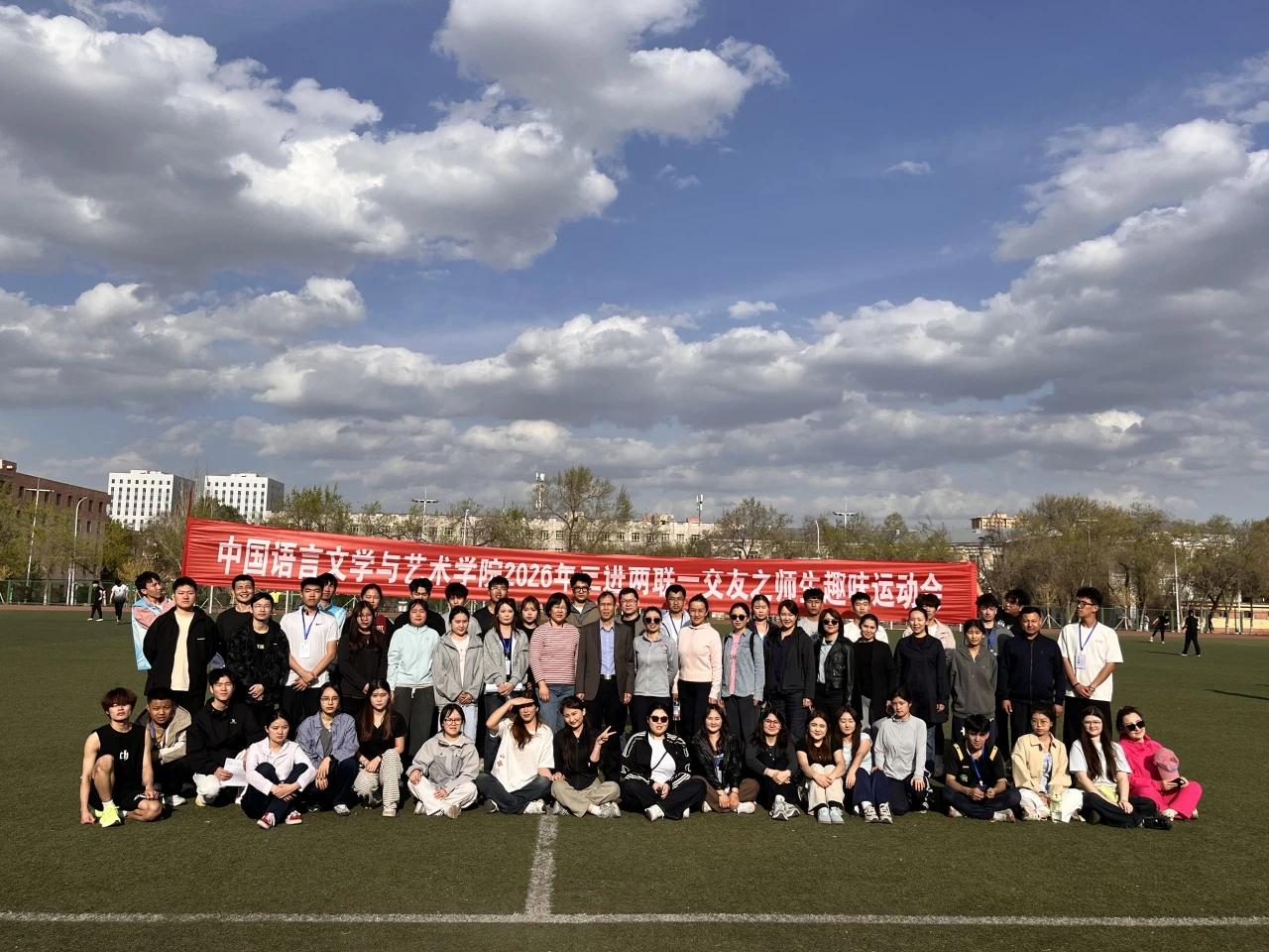 为深入践行“三进两联一交友”活动精神,同时为新疆农业大学2026年全民健身运动会选拔优秀运动员,4月12日下午,中国语言文学与艺术学院在巩宁运动场举办2026年师生趣味运动会暨校运会选拔赛。学院书记杨文革,院长安占峰、副书记郭璇、班主任及学生共同参与,在拼搏与欢笑中增进情谊,并为学院发掘体育人才。