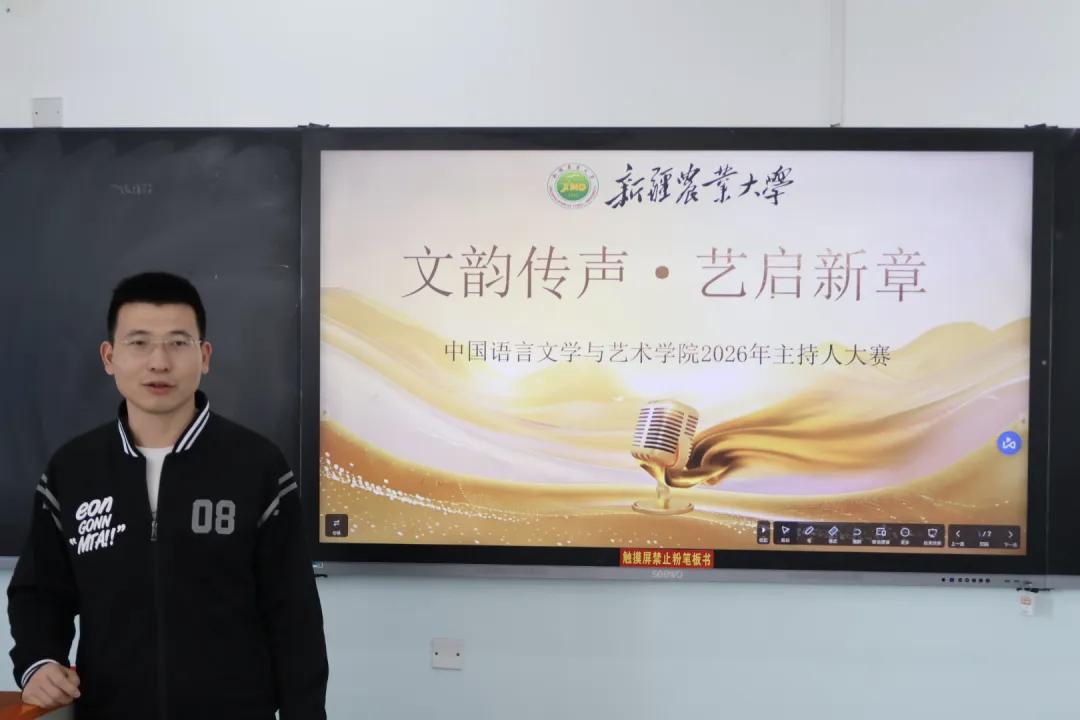 语言为媒,声动人心。近日,由新疆农业大学中国语言文学与艺术学院举办主持人大赛院级初赛圆满举行。本次比赛以“文韵传声·艺启新章”为主题,旨在发挥学院专业特色,搭建展示平台,让热爱语言表达的中语学子在舞台上用声音传递文韵,以主持绽放光彩。