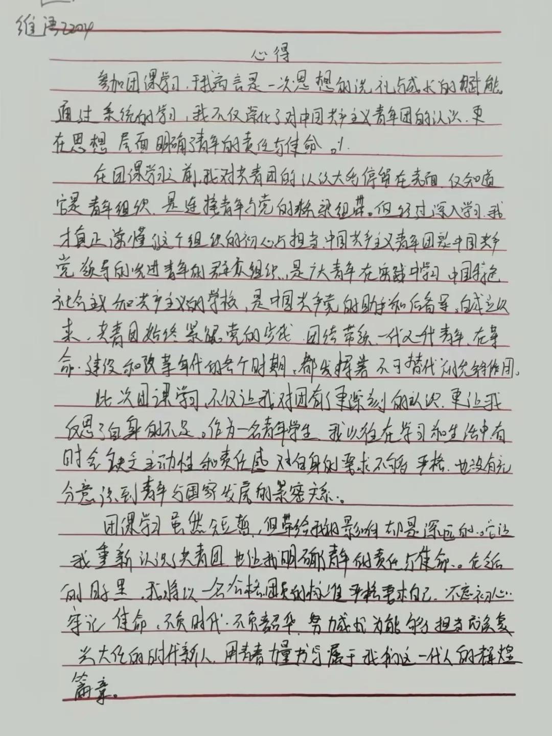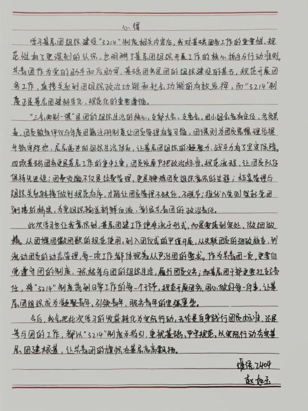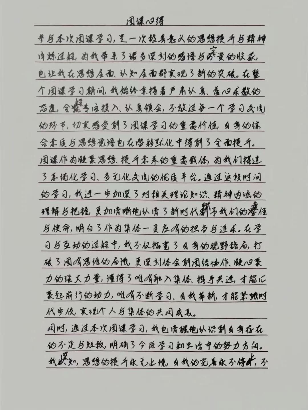 为将所思所感固化于心,课后,同学们郑重提笔,撰写学习心得。一字一句,不仅是课堂知识的复盘,更是对自身责任的审视与承诺。工整的字迹背后,是“从我做起,从细微处做起”的青春决心。